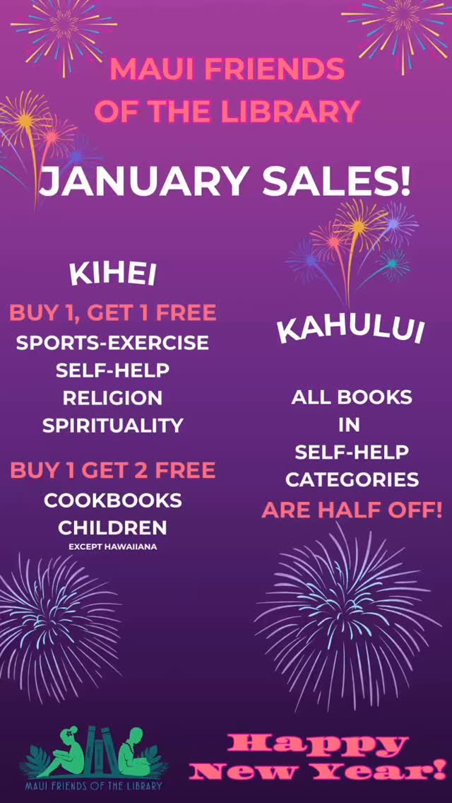 The Maui Friends of the Library seeks to share its love of books and reading with all of Maui. Stop by one of our three Maui bookstore locations in Kahului, Kihei, and Pu’unene.